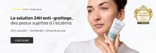 ⭐⭐⭐⭐⭐ "Souffrant d'eczéma depuis quelques années maintenant, je souhaitais changer ma routine et trouver des produits plus naturels. [...] Belle découverte, ma peau est rapidement apaisée et les crises diminuent voire s'espacent..." - Taly33