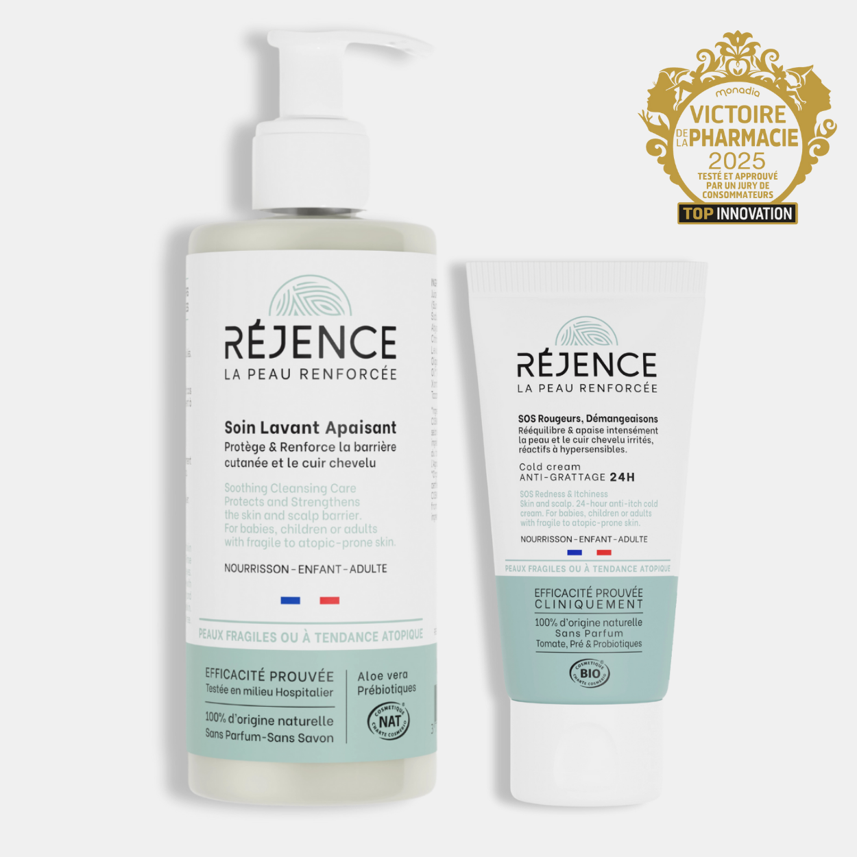 Chez Réjence, nous avons établi une No-List stricte pour garantir une sécurité maximale, particulièrement pour les peaux sensibles et atopiques, ainsi que pour les bébés, dont la barrière cutanée est encore immature. Nos produits sont formulés 100 % sans pétrochimie, sans silicones ni huile minérale, qui créent un film occlusif à la surface de la peau, l'étouffant et empêchant une bonne respiration cutanée.